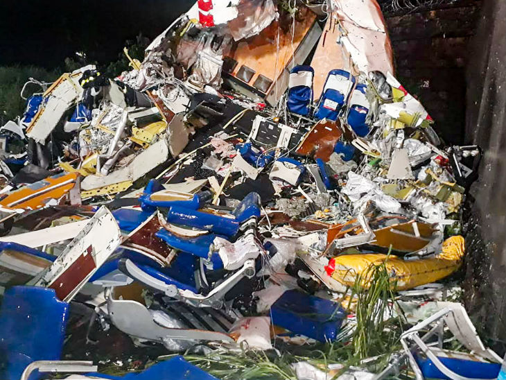 रनवे से 35 फीट गहरी खाई में गिरने के बाद दीवार से टकराया था विमान, 2 हिस्सों में टूट गया
